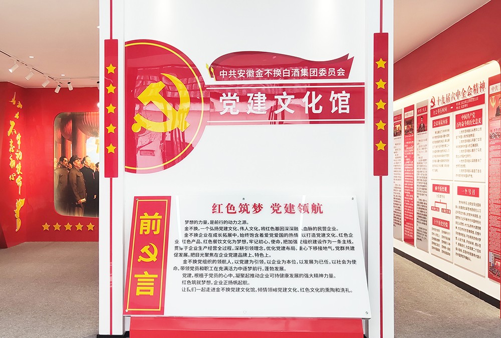 在亳州市委、譙城區委的關心支持下,金不換集團黨建文化館于2022年底落成,全面展示了金不換集團黨建企業文化工作的特色、成效和經驗,對增強黨員黨性意識,增強基層黨組織創造力、凝聚力、戰斗力,對創業、忠誠、責任、共享企業價值觀的形成,對提振職工群眾精氣神發揮積極的作用。